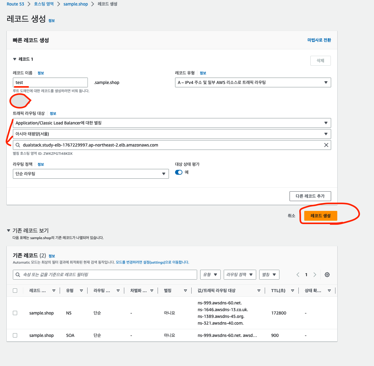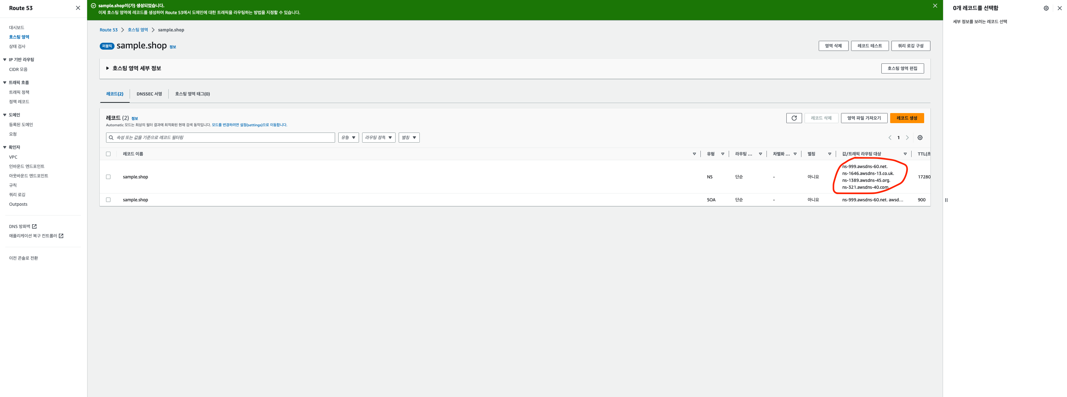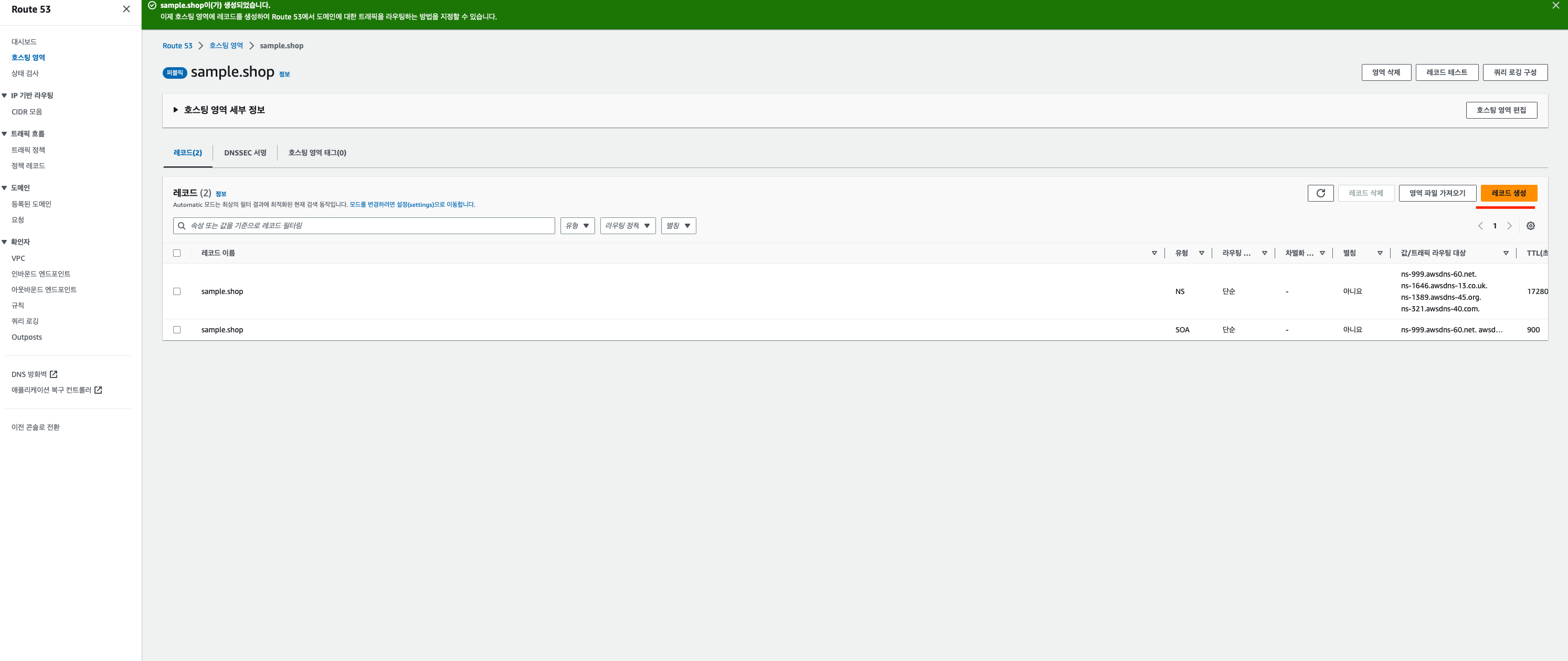 6. 도메인 체크 후 [레코드 생성] 버튼을 눌러줍니다.