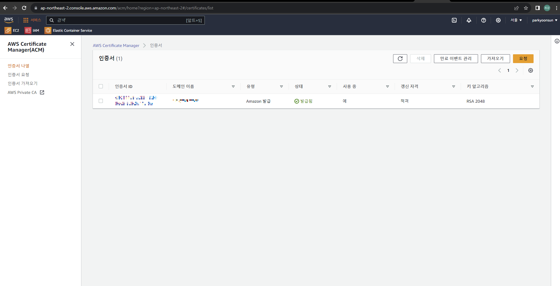 [인증서 ID] 를 클릭해줍니다 !