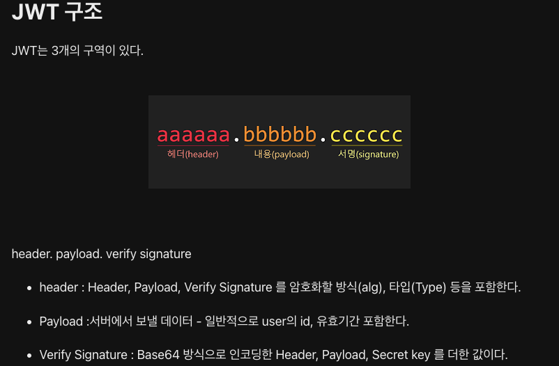 2. 서버에서는 계정 정보를 읽어 사용자를 확인 후, 사용자의 고유값을 부여한 후 기타 정보와 함께 payload에 집어넣는다.