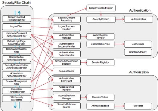 - FilterSecurityInterceptor : 이 필터는 AccessDecisionManager 로 권한부여 처리를 위임함으로써 접근 제어 결정을 쉽게해준다