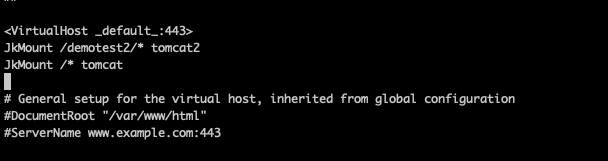 1. 이전 스탭에서는 mod_jk.conf로 JKmount를 해줬다면, ssl.conf에 설정을 해주거나 Include해주면 된다.