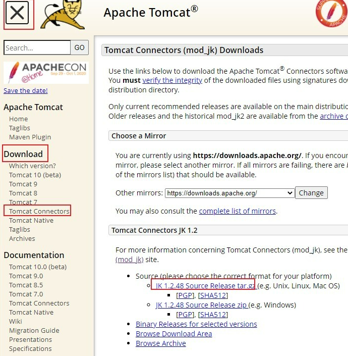 Download -> Tomcat Connecotrs -> JK ~~~~~~.tar.gz 우클릭 -> 링크 주소복사