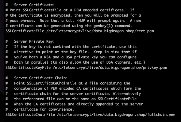 /etc/httpd/conf.d/ssl.conf에 각각의 pem에 맞춰 입력해주면 된다.