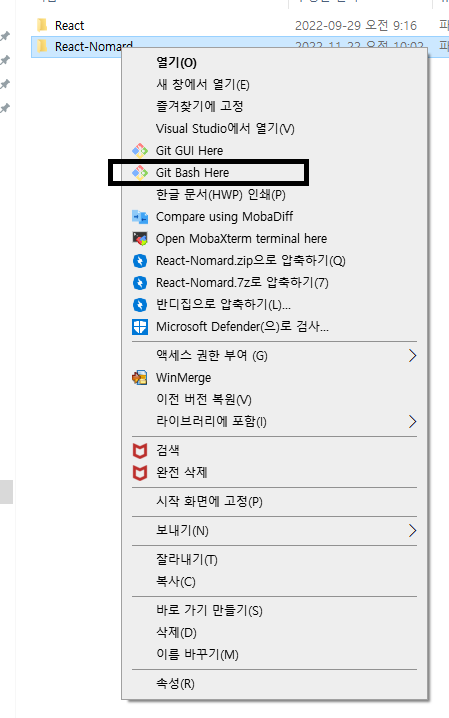 1. 올리고자 하는 폴더에서 마우스 우클릭 후 Git Bash Here 클릭한다.